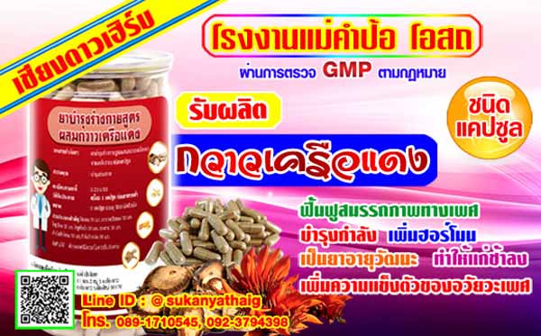 รับผลิต สมุนไพร เพิ่มฮอร์โมนชาย กวาวเครือแดง แคปซูล ฟรี(อย.)